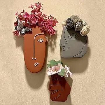 Show moreWelcome the elegance of contemporary art into your home with the TERESA'S COLLECTIONS Modern Morandi Ceramic Vase Wall Mounted Planter Set. This exquisite set features three unique planters designed to incorporate the beauty of abstractive face painting, allowing you to transform any wall into a stunning display of creativity and nature. Crafted with meticulous attention to detail from high-quality ceramic clay, each planter showcases a chic matte Morandi finish that complements a variety of home decor styles. Use these planters not only to hold your favorite succulents, cacti, or dried flowers but also to enhance the aesthetic appeal of your living space.