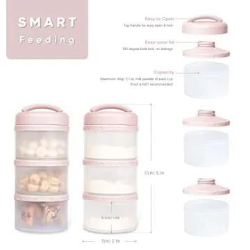 Termichy Stackable Formula Dispenser Portable Milk Powder Container, 2 Pack, Light Pink