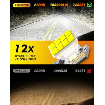 Show moreDiscover unparalleled brightness and safety on your nightly drives with the Termitor Latest H11/H9/H8 9005/HB3 Light Bulbs Combo. With a staggering 12X more brightness than standard options, these bulbs deliver an impressive 100,000 lumens, ensuring clear visibility no matter the conditions. Leveraging state-of-the-art E30 technology, the Termitor bulbs enhance your nighttime experience, allowing you to drive with confidence. The **6500K white light** emitted is not only bright but also provides a more natural light, reducing eye strain during long journeys.