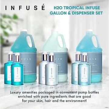 Terra Pure H2O Tropical Infuse Gallon & Dispenser Set | Shampoo, Conditioner, Body Wash Gallons | Refillable 10.14oz Pump Bottles