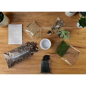 While many terrarium kits on the market include sterilized and low-quality soil, the TerraGreen Creations Succulent Planter Kit distinguishes itself by offering unadulterated bioactive soil curated for optimal succulent health. Unlike competitors, our kit is tailored for ease of use, ensuring every user experiences minimal mess and maximum enjoyment. Additionally, the thoughtful packaging (including zip lock bags for convenience) sets this kit apart as a user-friendly option, especially for those with mobility issues or beginners who may require a simpler setup.