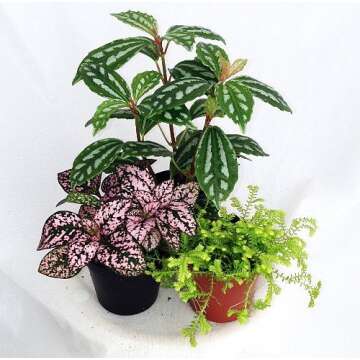Unlike similar products on the market, our Terrarium & Fairy Garden Plants are curated for not only visual appeal but also longevity and ease of care. Many competitors offer single types of plants that may not flourish well together or require specific conditions. Our trio of plants guarantees a balanced ecosystem, thriving side by side, which provides a dynamic and lively addition to your decor.