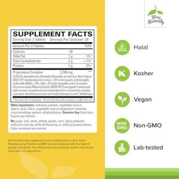 Terry Naturally Curamin Extra Strength - 60 Tablets - Non-Addictive Pain Relief Supplement with Curcumin from Turmeric, Boswellia & DLPA - Non-GMO, Vegan, Gluten Free - 20 Servings