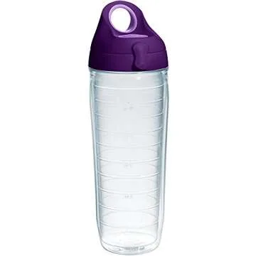 Show more Introducing the Tervis Clear & Colorful Lidded Double Walled Insulated Tumbler, designed for the discerning beverage lover who values both quality and style. Proudly made in the USA, this 24oz tumbler features a stunning royal purple lid and an innovative double-wall construction that keeps drinks colder or hotter for significantly longer. Its sleek and ergonomic design not only looks great but also fits conveniently in most car cup holders, making it your perfect travel companion whether you're on a road trip or heading to work. Plus, you can rest easy knowing that it is crafted from strong, BPA-free materials that resist impact and avoid retaining odors or tastes, ensuring that every sip is refreshing and pure.