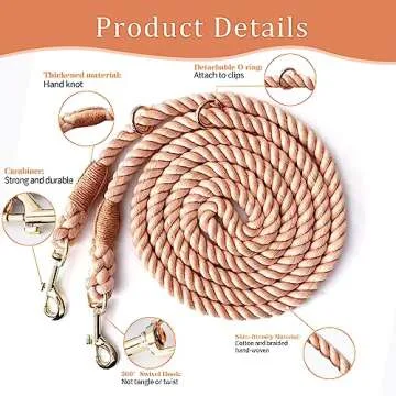 Tesitehi Multifunctional Rope Dog Leash 7.5 FT with Adjustable Double Swivel Hook Hands Free for Small Medium and Large Dogs Running Hiking Camping Walking (Linen Brown)