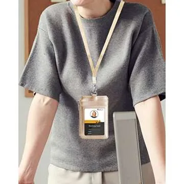 Teskyer Badge Holder with Side Zip Pocket, Multiple Card Slots Leather ID Holder Wallet with Neck Lanyard for Office Staffs, Teachers/Students, Couriers, Workers, Gold