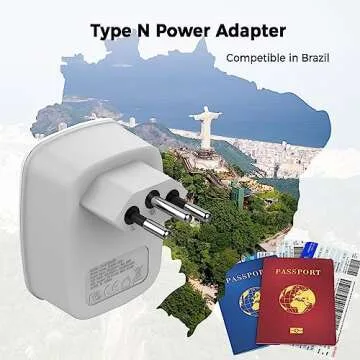 Show more The TESSAN Brazil Travel Plug Adapter is a versatile and essential accessory for anyone traveling to Brazil. Designed with functionality and convenience in mind, this compact adapter allows you to charge multiple devices simultaneously without the hassle of carrying multiple charging bricks. Featuring a 3-in-1 design, this adapter includes two USB ports and one standard N American outlet, making it compatible with a wide range of devices including cell phones, tablets, and laptops. What sets this adapter apart is its ability to charge up to 2.4A total, meaning you can keep your key devices powered up while on the go.