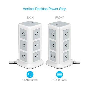 Why You Will Love This Product?You will fall in love with the TESSAN Surge Protector Power Strip Tower because it simplifies your charging needs while prioritizing safety. Its thoughtful design, spacious ports, and secure surge protection take the stress out of keeping all your devices powered. Embrace a clutter-free environment where you can charge, mount, and protect all at once—this power strip isn't just a necessity, it's an upgrade to your daily life!