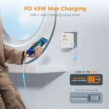 TESSAN Universal Travel Adapter, 45W International Plug Adaptor with 2 USB C 3 USB A Ports, Travel Worldwide Power Outlet for US to European EU UK AUS Ireland(Type C/G/A/I)