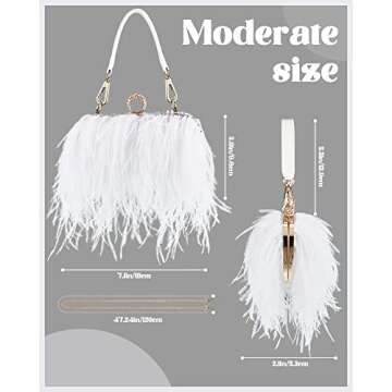 Tessco Women Ostrich Feather Tote Bag Fluffy Purse Clutch Feather Evening Handbag for Wedding(White)