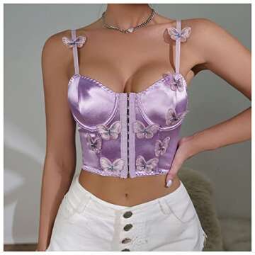 Testudineus Women Silky Satin Front Push Up Bustier Chic Butterfly Applique Corset Bra Vest Tight Sleeveless Tube Top
