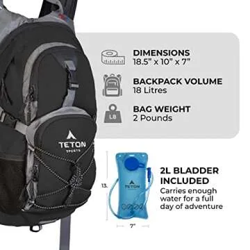 TETON Sports Oasis 18L Hydration Pack with Free 2-Liter water bladder; The perfect backpack for Hiking, Running, Cycling, or Commuting