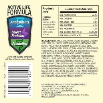Show moreDiscover the essential nutrition your tropical fish deserve with the Tetra TetraMin Tropical Flakes. This 3.53-ounce container is packed with highly digestible ingredients tailored specially for top- and mid-feeding fish, ensuring they receive the optimal diet. Whether you have vibrant bettas, lively guppies, or a charming community tank, these flakes support active lifestyles and promote growth. With a complete diet formula designed to keep your fish in peak condition, you can rest assured knowing you’re providing a feeding experience that’s as beneficial as it is gratifying.