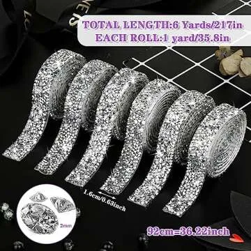 Tetutor 6 Rolls Self Adhesive Rhinestone Ribbons, Sliver Resin Rhinestone Strips, Diamond Crystal Rhinestone Ribbon Roll Stickers Glitter Bling Ribbons Rhinestone for Crafts Fabric Car (Sliver)