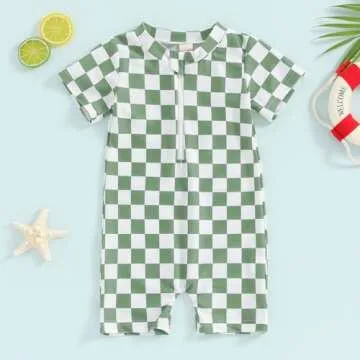 Show more Introducing the tetyseysh Baby Boy One Piece Swimsuit, the ultimate summer essential for your little one that guarantees both style and comfort! Crafted from a premium blend of 95% polyester and 5% spandex, this adorable checkerboard print swimsuit not only looks great but also features a quick-drying and breathable fabric that ensures your baby's skin stays comfortable during all their water adventures. Designed specifically for toddlers aged 6-12 months, it makes your beach outings and pool parties a breeze!