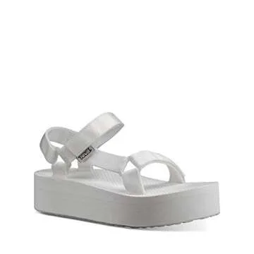 Show moreIntroducing the Teva Women's Flatform Universal Platform Sandal in a refreshing Bright White color—your new go-to for all summer adventures! Designed with an eye toward both comfort and style, these sandals feature a sleek strappy upper equipped with hook-and-loop closures at the ankle and vamp, offering you a customizable fit that's as fashionable as it is functional. The durable yet lightweight EVA footbed ensures that whether you're strolling the city streets or lounging poolside, your feet will be supported and pampered all day long.