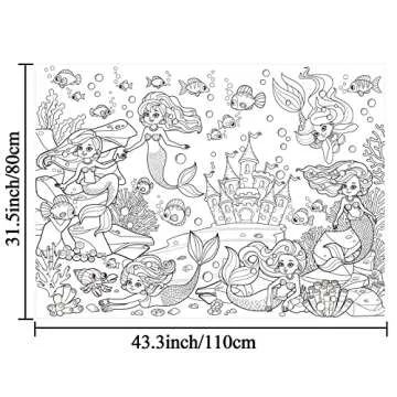 Show more Transform art time into an under-the-sea adventure with the Tevxj Mermaid Coloring Poster, a giant coloring sheet designed to inspire and entertain! Measuring approximately 43.3 x 31.5 inches (110 x 80 cm), this impressive table-sized canvas invites creativity from multiple children at once, making it the perfect activity for playdates, parties, or community events. Crafted with premium quality paper, this durable surface resists saturation from paints, ensuring long-lasting fun as kids explore their artistic talents. Its non-toxic, odor-free composition puts parents’ minds at ease while children dive into the rich ocean-themed illustrations featuring mermaids, castles, and sea creatures, all awaiting splashes of color!