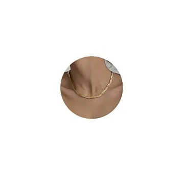 Show more Indulge in the elegance of the Silver Choker Necklace by Tewiky, a stunning accessory designed for versatility and style. This flat snake necklace showcases a flawless and minimalistic design, making it perfect for wearing alone or layering with other favorite chains to create your unique look. Its slender silhouette brings a touch of sophistication to any outfit, whether you're dressing up for a special occasion or going for a casual day out. The 14K gold plating over high-quality brass ensures a durable piece that won't tarnish easily, providing a long-lasting shine that stays radiant with each wear.
