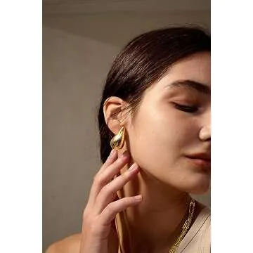 Tewiky Chunky Gold Teardrop Hoop Earrings for Women, Lightweight Hypoallergenic 14K Gold Plated Open Thick Drop Earrings Big Simple Half Fashion Jewelry for Teen