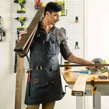 Texas Canvas Wares Waxed Canvas Heavy Duty Work Apron With Pockets - Deluxe Edition - with Quick Release Buckle Adjustable up to XXL for Men and Women (Grey Deluxe Edition)