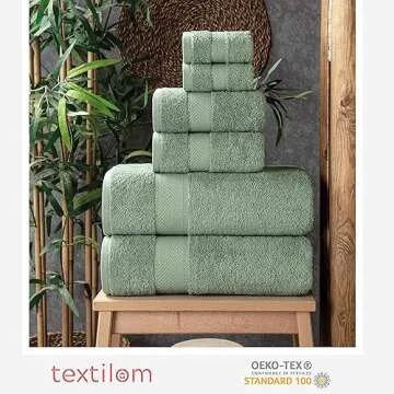 TEXTILOM 100% Turkish Cotton 6 Pcs Luxury Bath Towels , Soft & Absorbent Bathroom Towels Set (2 Bath Towels, 2 Hand Towels, 2 Washcloths)- Green
