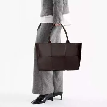 TFTOYC Woven Bag for Women,Leather Shoulder Bag Large Purse Handbag(Coffee)