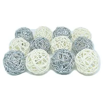 Thailand's Handcrafted Natural Wicker Balls - 12 Pcs Silver & White Decorative Spheres