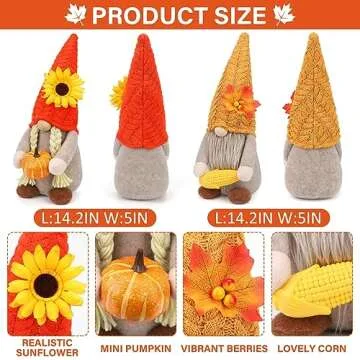 - 🎉 Adorable Fall Element Design: Each gnome is designed with elements that celebrate the season, including cotton woven hats with corn and pumpkins.