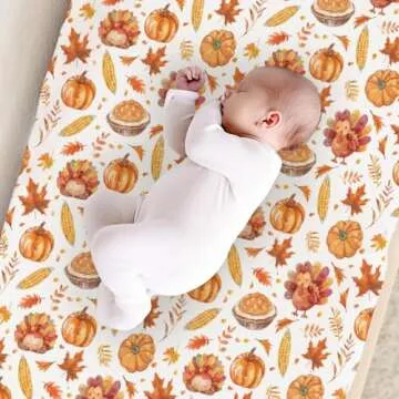 Thanksgiving Turkeys Pumpkins Baby Crib Sheets, Autumn Leaves Corns Pattern Baby Fitted Crib Sheet for Standard Crib and Toddler Mattress, Unisex Turkeys Crib Mattress Sheet for Baby Boys Girls-28*52