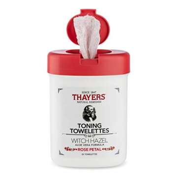 THAYERS Alcohol-Free Witch Hazel Toning Towelettes with Aloe Vera, Rose Petal, 25 Count