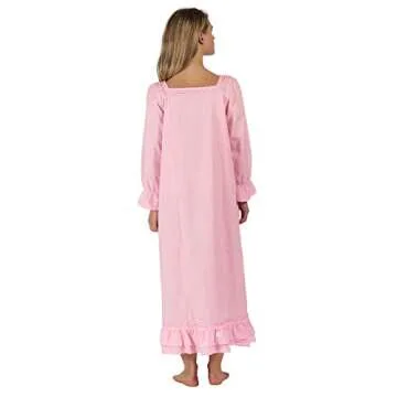 Show moreIntroducing the Martha Nightgown by 1 For U, a stunning blend of style, comfort, and elegance that redefines your nighttime attire. Crafted from 100% high-quality cotton, this ankle-length nightgown features long sleeves and a delicate elastic trim that encircles the wrists, ensuring both comfort and a graceful fit. The exquisite ribbon border beautifully accents the square neckline, sleeve openings, and the hem's soft ruffle, making it a timeless piece for any lady's nightwear collection.