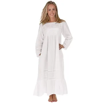 Show moreIntroducing The 1 for U Victorian Nightgown - an exquisite blend of elegance and comfort, perfect for those serene nights at home. Crafted from high-quality 100% cotton, this long sleeve nightgown features intricate pin tucks on the bodice and delicate eyelet lace complemented by charming floral embroidery. The nightgown's full-length design and elegant square neckline offer a timeless style, while its thoughtful addition of side-seam pockets makes it as practical as it is beautiful.