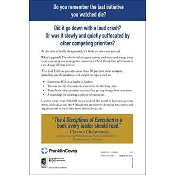 Show moreUnlock your potential and transform your approach to business with the insightful guide, The 4 Disciplines of Execution: Second Edition. This powerful book, authored by renowned experts, presents a practical framework that empowers teams and leaders to achieve their most critical goals effectively. It dives into concepts like Wildly Important Goals (WIGs), Whirlwinds, and leading measures, which are crucial for focusing on what truly matters in a busy work environment.