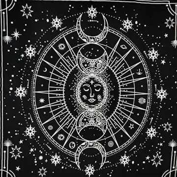 This versatile tablecloth is designed with celestial motifs, including sun and moon designs, ideal for those who appreciate astrology or pagan practices. The rich black and silver colors create a mystical aura that is sure to enhance your spiritual rituals or provide a stylish backdrop for gatherings. If you are exploring witchcraft supplies or seeking an enchanting piece of decor, this altar cloth offers an aesthetically pleasing blend of practicality and artistry.