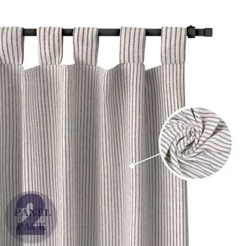 THE ART BOX Natural Linen Gauze Tab Top Semi Sheer Blackout Striped Curtains for Bedroom Light Filtering Linen Substitute Window Home Décor Curtain, Blue on Beige, 2 Panel Set (84 x 42 inches Each)