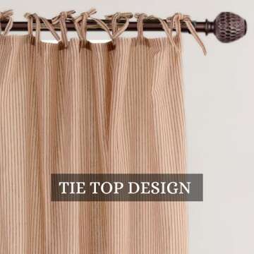 THE ART BOX Natural Linen Gauze Tie Top Sheer Semi Blackout Striped Curtains for Bedroom Filtering Hanging Substitute Windows Home Décor Curtain, Maroon on Beige, 2 Panel Sets, (63"x42" inch Each)
