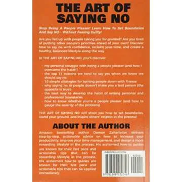 Show more Discover the power of self-assertion with The Art Of Saying NO: How To Stand Your Ground, Reclaim Your Time And Energy, And Refuse To Be Taken For Granted (Without Feeling Guilty!). This insightful guide tackles the often-taboo subject of saying "no" and empowers you to take control of your life. With practical tips and relatable anecdotes, this book is designed for those striving to overcome the burdens of people-pleasing and guilt. Written for anyone on a journey of personal growth or anyone who feels overwhelmed by commitments, this book acts as a ray of light, showing you how to set healthy boundaries while maintaining your peace of mind.