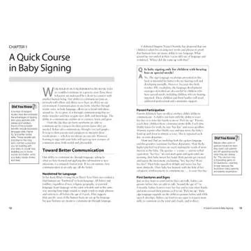 The book features a comprehensive layout divided into easily navigable sections, starting from a quick course in baby signing to specific signing techniques for various age groups. You will find chapters dedicated to signing with infants aged 0-6 months, 6-12 months, and up to 3 years. This structured approach ensures that both you and your child can progressively learn and grow together.