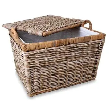 The Basket Lady Lift-Off Lid Wicker Storage Basket, Medium, 20 in L x 15 in W x 14 in H, Serene Grey…