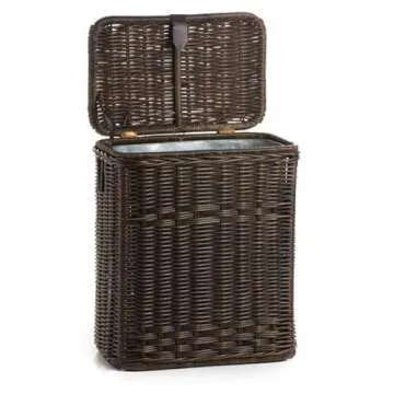 The Basket Lady Wicker Kitchen Trash Basket with Metal Liner, 16 in L x 10.5 in W x 24 in H, Antique Walnut Brown