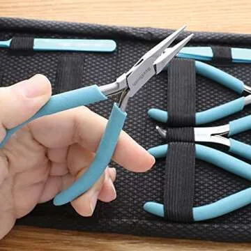 The Beadsmith Fashion Color Pliers – Set of 8 Slimline Color-Coordinated Tools – Matching Clutch in Light Blue – Jewelry Making Supply Kit to Create Necklaces, Bracelets, Earrings & More