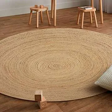 THE BEER VALLEY Jute Braided Boho Area Rug, 4' Round - Natural, Hand Woven Farmhouse Reversible Rugs for Living Room, Kitchen, Bedroom - 4 Feet Round