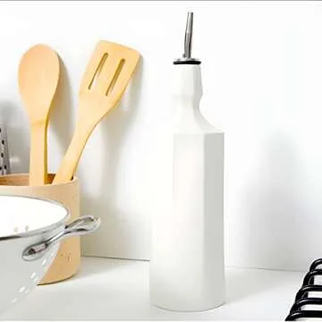 The Bright Angle Elixir Ceramic Olive Oil Dispenser Bottle for Kitchen - Modern, Handmade, Large Capacity Olive Oil and Vinegar Dispenser with Oil Stopper, Silk White