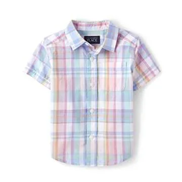 The Children's Place,and Toddler Boys Short Sleeve Button Down Shirt,Rose Pottery,3T