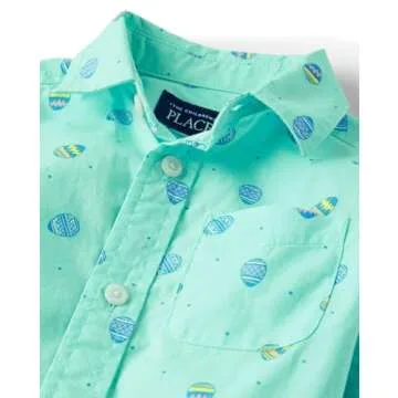 Show moreWelcome to spring with the delightful Baby Boys and Toddler Poplin Short Sleeve Button Down Shirt from The Children's Place. Designed specifically for your little ones, this Easter Egg Mint shirt combines vibrant, whimsical aesthetics with premium comfort. Made from 100% cotton poplin, this shirt is imported and ensures that your child is dressed in style without compromising on quality. The soft, breathable fabric is an ideal choice for active play during the warmer Easter festivities. With a classic pointed collar and short sleeves, this shirt also features a stylish curved shirttail hem that keeps your boy looking sharp and fashionable at any gathering.