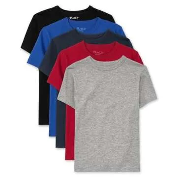 The Children's Place,Boys,Basic Short Sleeve Tee,Black/Grey/Navy/Blue/Red 5-Pack,Medium