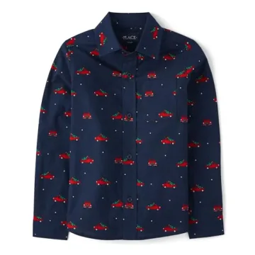 Show moreDiscover the perfect blend of style and comfort with our BUTTON UP SHIRT from THE CHILDREN'S PLACE. Designed for the young trendsetter, this classic shirt is crafted from 100% cotton poplin, ensuring a soft and breathable experience for your little one. The shirt offers great versatility, making it an ideal choice for both formal occasions and casual day-outs. Featuring a charming allover Christmas tree and truck print, this shirt is sure to stand out in any festive gathering. The pointed collar adds a touch of sophistication, while the long roll-up sleeves with button-tab cuffs provide a flexible wear option depending on the season and the occasion.