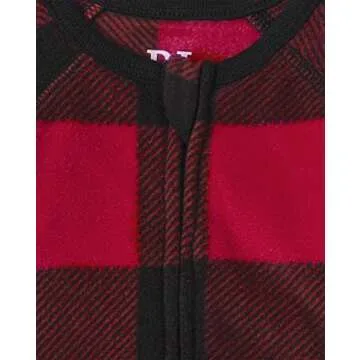 The Children's Place,Family Matching Chirstmas Holiday Fleece Pajamas Sets, Adult, Big Kid, Toddler, Baby,Baby & Toddler - Zip Sleeper,RED/BLK BUFF,0-3 MONTHS