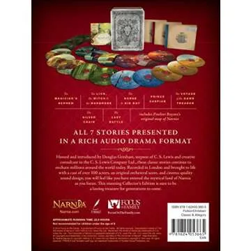 While other audiobook versions may present C.S. Lewis's works, the Chronicles of Narnia Collector's Edition uniquely combines dramatization with high production values, making it a standout choice among versions on the market. Unlike traditional audiobooks, this collection feels more like a live performance, heightening the listener's engagement and emotional connection to the story. The addition of audio commentary from Douglas Gresham significantly enriches the experience, providing context that other adaptations lack.