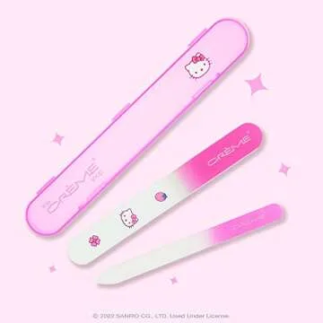 Show moreDiscover the enchanting world of nail care with the limited edition Hello Kitty and The Crème Shop Nail File Collection that perfectly marries adorable design with salon-quality performance. This exclusive set features two elegantly crafted glass files, designed to bring a touch of magic to your grooming routine. Each file is made using double-sided etched technology, ensuring that they can delicately file, shape, and polish your nails with ease. The accompanying travel case not only adds convenience but also makes it a perfect companion for your on-the-go lifestyle.